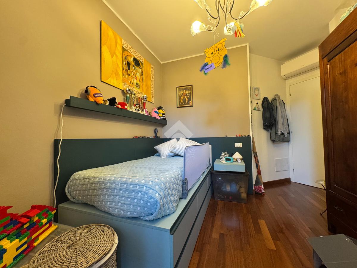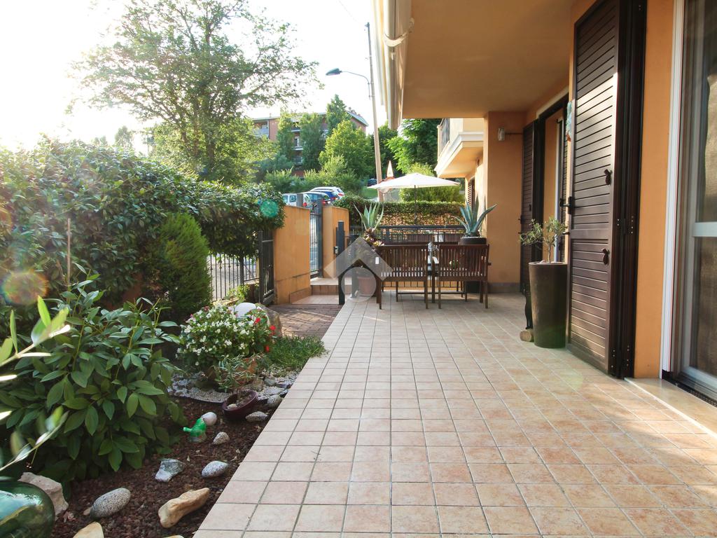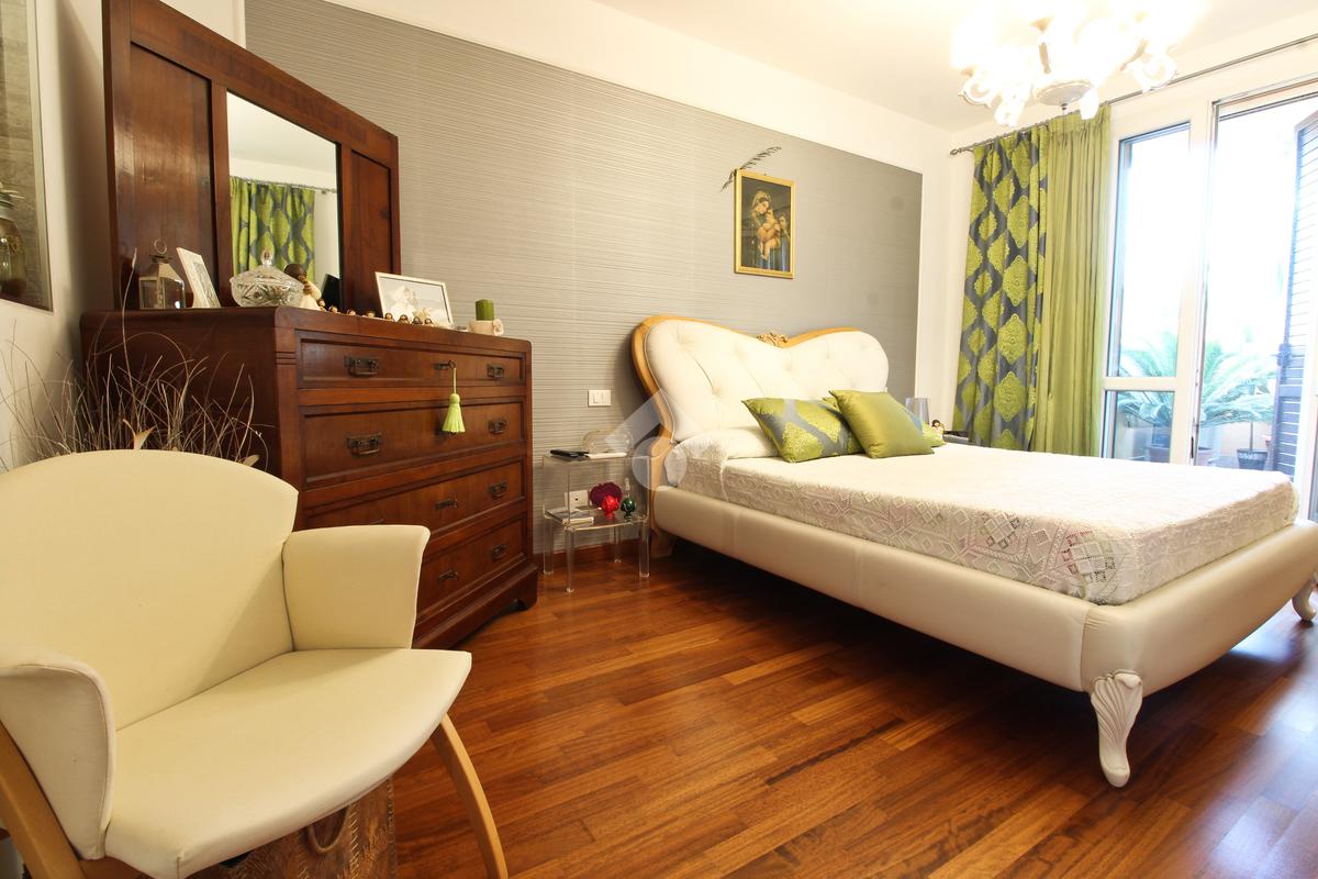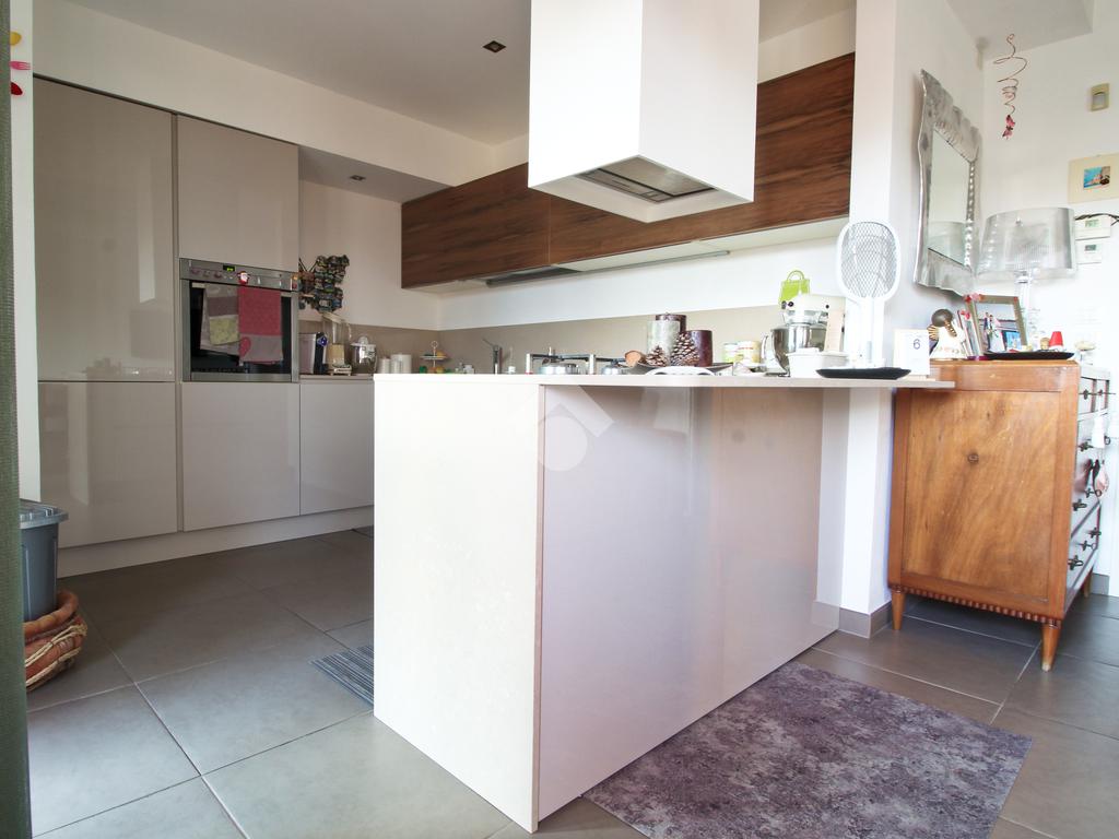 A completare la soluzione un'ampia terrazza con giardino e un doppio garage.