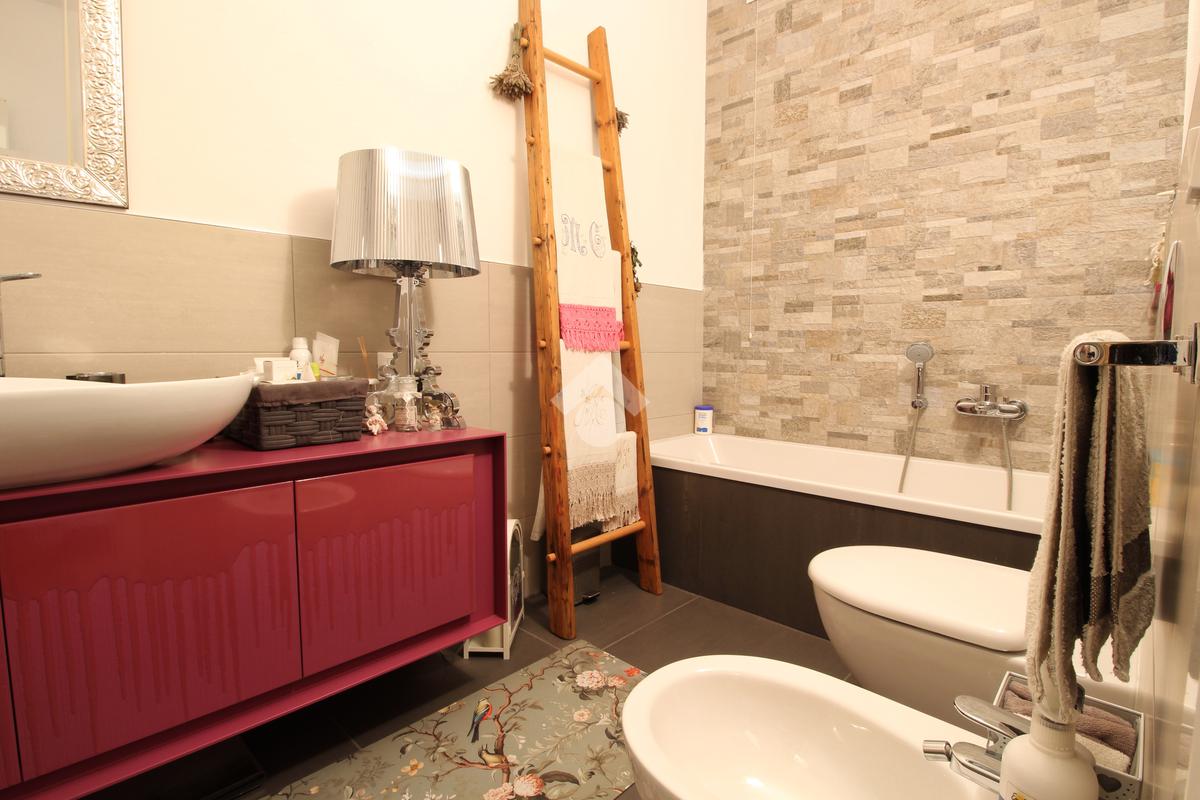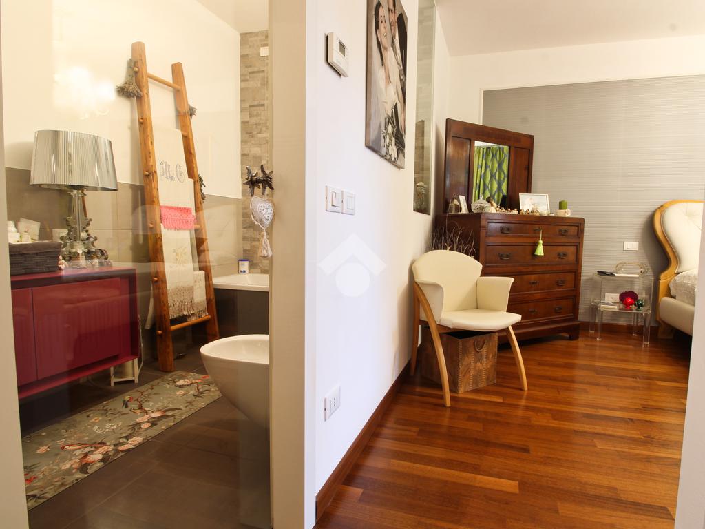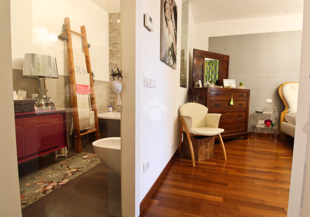 A completare la soluzione un'ampia terrazza con giardino e un doppio garage.