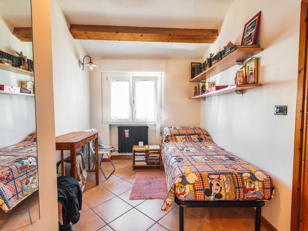 Qui si sviluppano una camera matrimoniale accogliente, uno studio versatile (adatto anche come seconda camera) e un bagno finestrato con doccia.